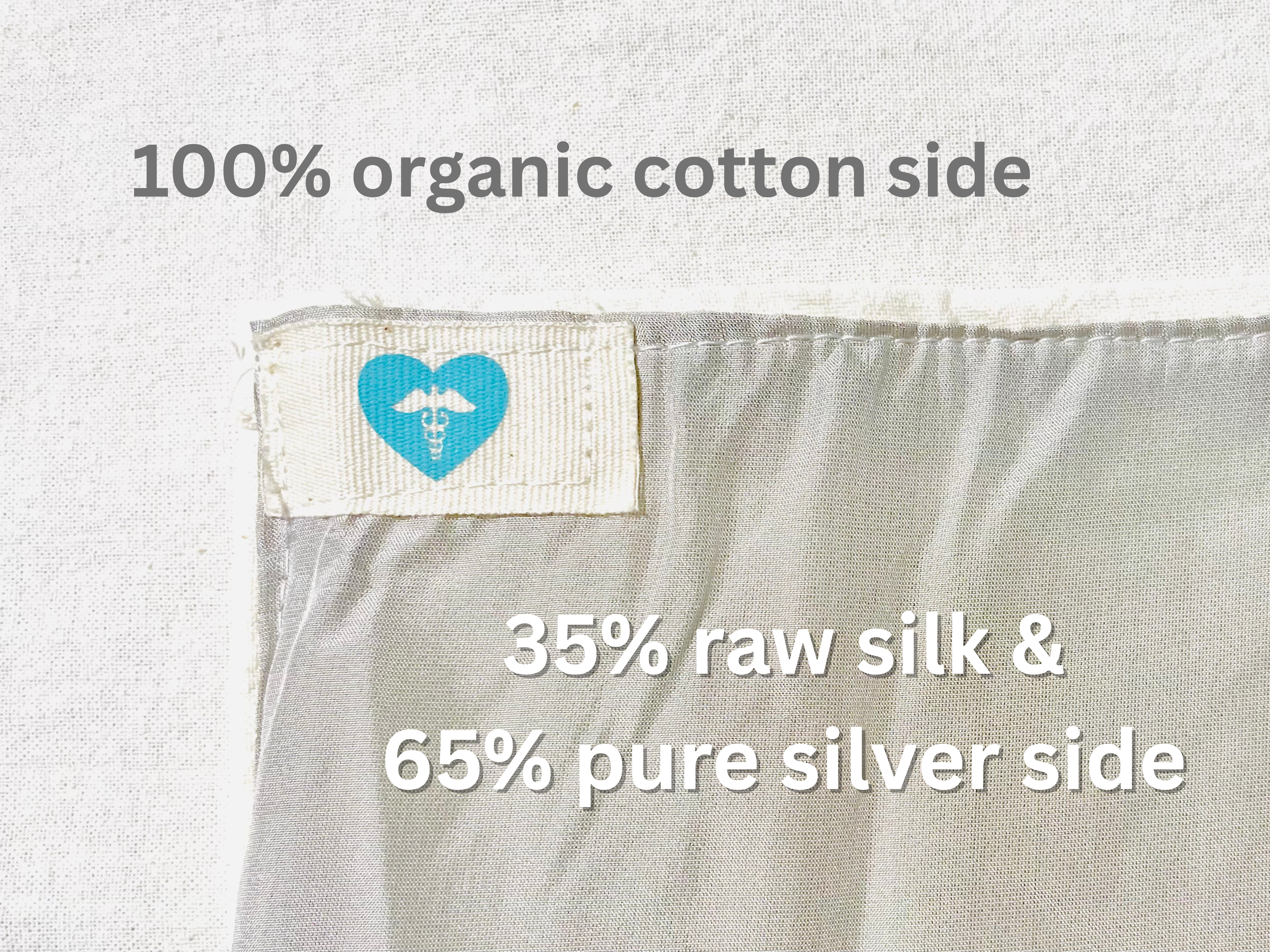 100% organic cotton on one side, plus fully conductive grounding fabric made from only pure silver and raw silk lining from edge-to-edge on the other. Pure, natural and simple, the conductive grounding material is made from only pure, all natural silk and silver fibers -- soft, gentle, and completely safe for skin contact.