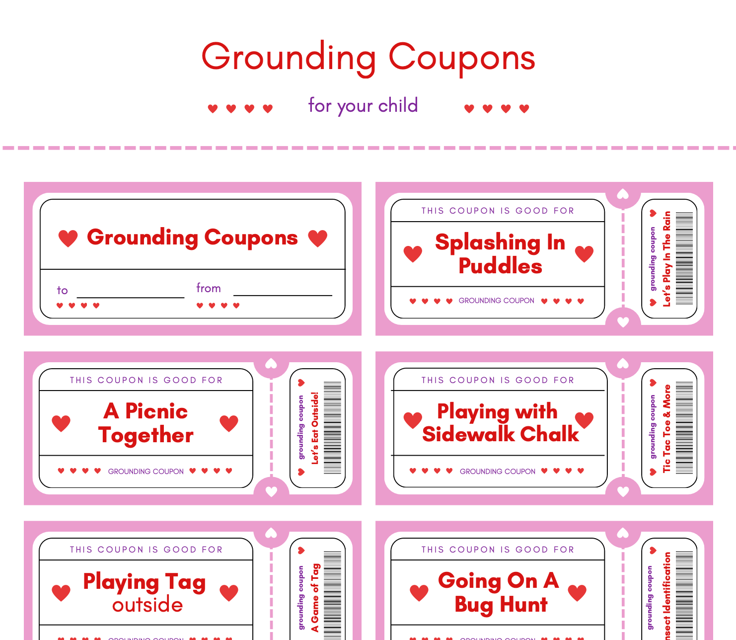 A one page PDF that you can download and print instantly, this coupon book gives you 9 coupons and a cover that you can staple together to make a little coupon booklet.